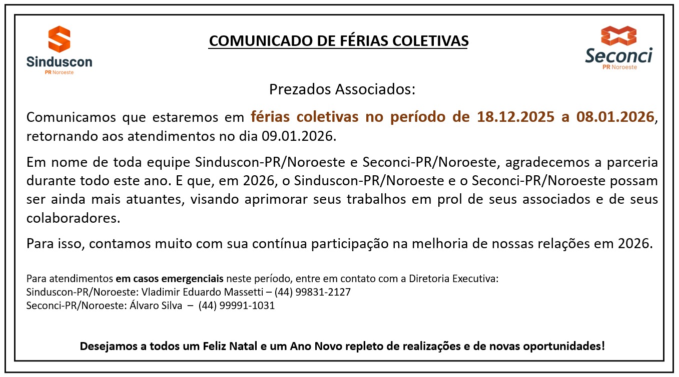 O SECONCI é um braço social do SINDUSCON, criado para propiciar qualidade de vida, saúde e segurança ao trabalhador, sempre de modo preventivo. Clique e saiba mais.